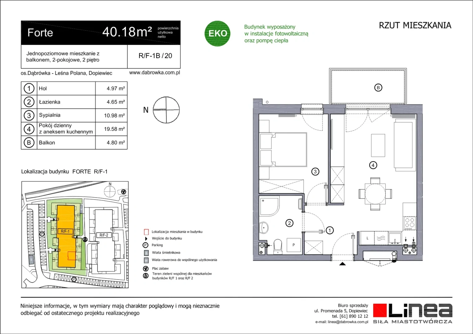 Nowość na osiedlu Leśna Polana. W budynku Forte zaprojektowano szeroki wybór mieszkań - od przytulnych kawalerek po przestronne, rodzinne apartamenty. Każde z nich charakteryzuje się ergonomicznym układem pomieszczeń, który umożliwia maksymalnie wykorzystanie przestrzeni. Duże okna i balkony tworzą naturalne połączenie z otaczającą zielenią, a funkcjonalne rozwiązania techniczne, takie jak rekuperacja, pompy ciepła i panele fotowoltaiczne, gwarantują niższe koszty eksploatacji i większy komfort życia.