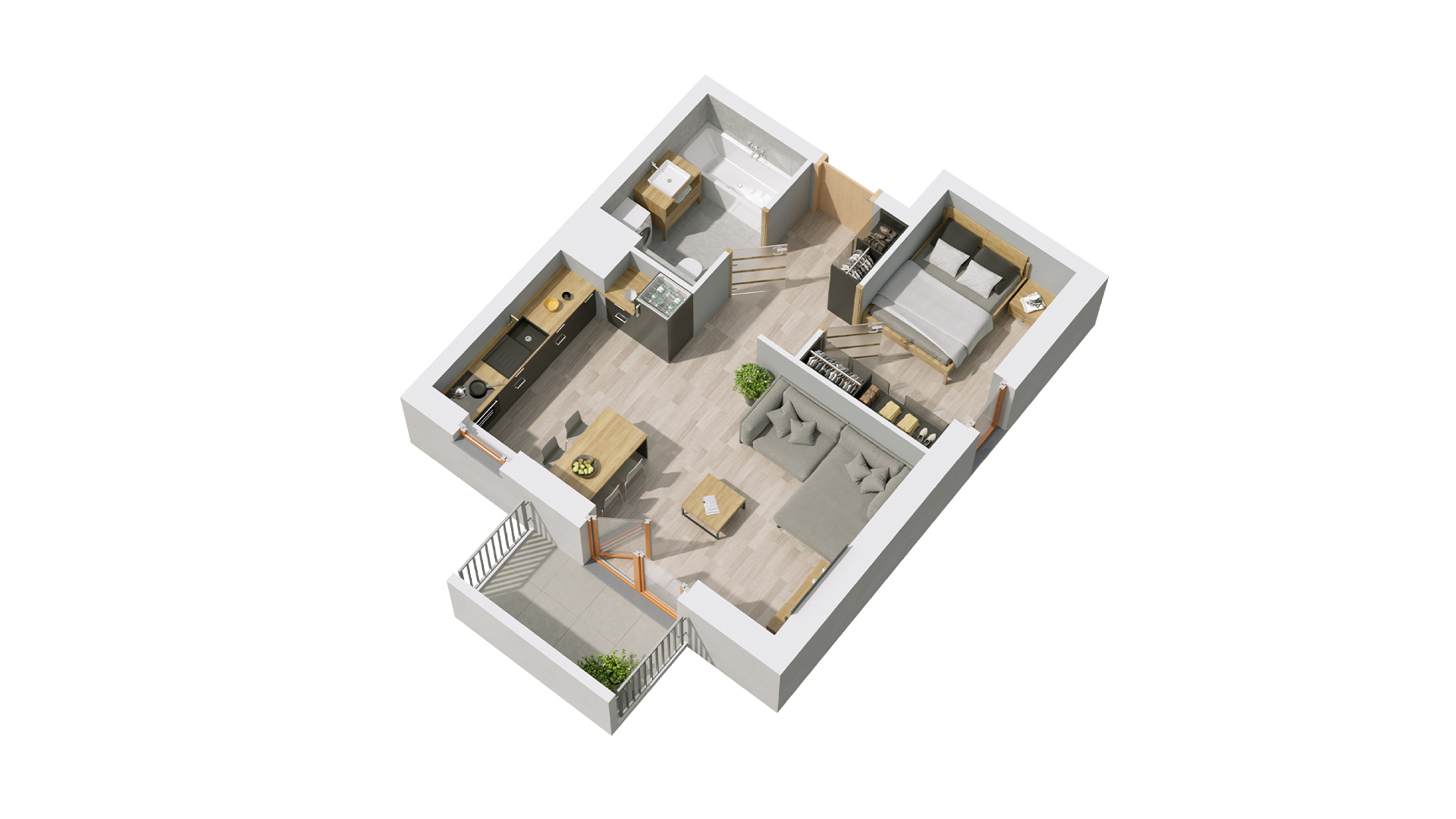 Niewielki budynek wielorodzinny. Nowoczesna architektura, ustawne mieszkania i duży wybór metraży sprawia, że każdy znajdzie tu coś dla siebie. Mieszkania na parterach posiadają własne ogródki, a te na piętrach duże balkony i tarasy. Dodatkowe korzyści to wiata rowerowa i wózkarnia, dostępne przy wejściu do budynku.