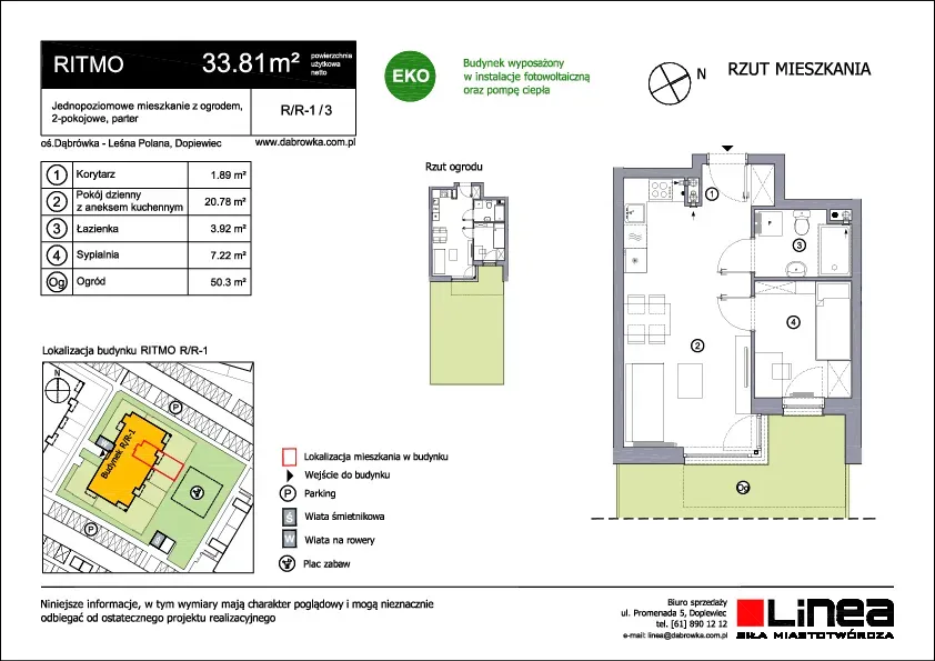 Ritmo to nowy typ wielorodzinnego budynku na osiedlu Dąbrówka - Leśna Polana. Zaprojektowalismy go z myślą o komforcie i zrównoważonym stylu życia mieszkańców naszego osiedla. W Ritmo będą znajdować się trzy kondygnacje z mieszkaniami o powierzchni od 28 do 52 m2, z jednym, dwoma lub trzema pokojami. Mieszkania na parterze tradycyjnie będą miały dostęp do urokliwych ogródków, natomiast te na wyższych kondygnacjach będą wyposażone w przestronne balkony. Zadzwoń lub napisz do nas, jeśli interesuje Cię oferta mieszkań Ritmo.