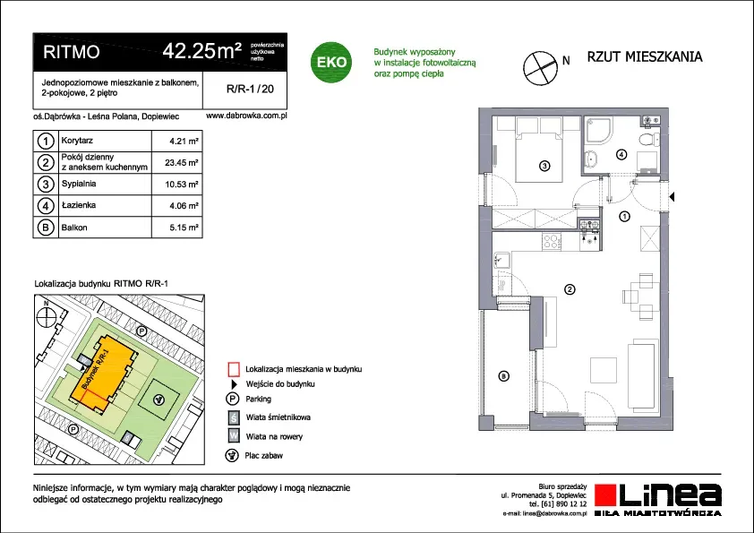 Ritmo to nowy typ wielorodzinnego budynku na osiedlu Dąbrówka - Leśna Polana. Zaprojektowalismy go z myślą o komforcie i zrównoważonym stylu życia mieszkańców naszego osiedla. W Ritmo będą znajdować się trzy kondygnacje z mieszkaniami o powierzchni od 28 do 52 m2, z jednym, dwoma lub trzema pokojami. Mieszkania na parterze tradycyjnie będą miały dostęp do urokliwych ogródków, natomiast te na wyższych kondygnacjach będą wyposażone w przestronne balkony. Zadzwoń lub napisz do nas, jeśli interesuje Cię oferta mieszkań Ritmo.