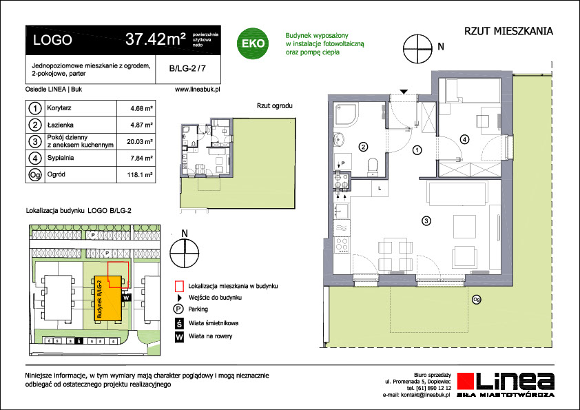 LOGO jest trzykondygnacyjnym budynkiem wielorodzinnym. Nowoczesna architektura, ustawne mieszkania i duży wybór niewielkich metraży sprawia, że każdy znajdzie tu coś dla siebie. Jeśli szukasz dobrze zaprojektowanej kawalerki lub mieszkania dwu lub trzypokojowego, to mieszkanie w LOGO spełni Twoje oczekiwania. Lokale na parterze posiadają własne ogródki, a te na piętrach balkony. Dodatkowo w budynku znajduje się wózkarnia i rowerownia.