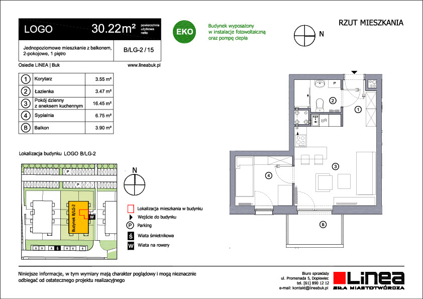 LOGO jest trzykondygnacyjnym budynkiem wielorodzinnym. Nowoczesna architektura, ustawne mieszkania i duży wybór niewielkich metraży sprawia, że każdy znajdzie tu coś dla siebie. Jeśli szukasz dobrze zaprojektowanej kawalerki lub mieszkania dwu lub trzypokojowego, to mieszkanie w LOGO spełni Twoje oczekiwania. Lokale na parterze posiadają własne ogródki, a te na piętrach balkony. Dodatkowo w budynku znajduje się wózkarnia i rowerownia.