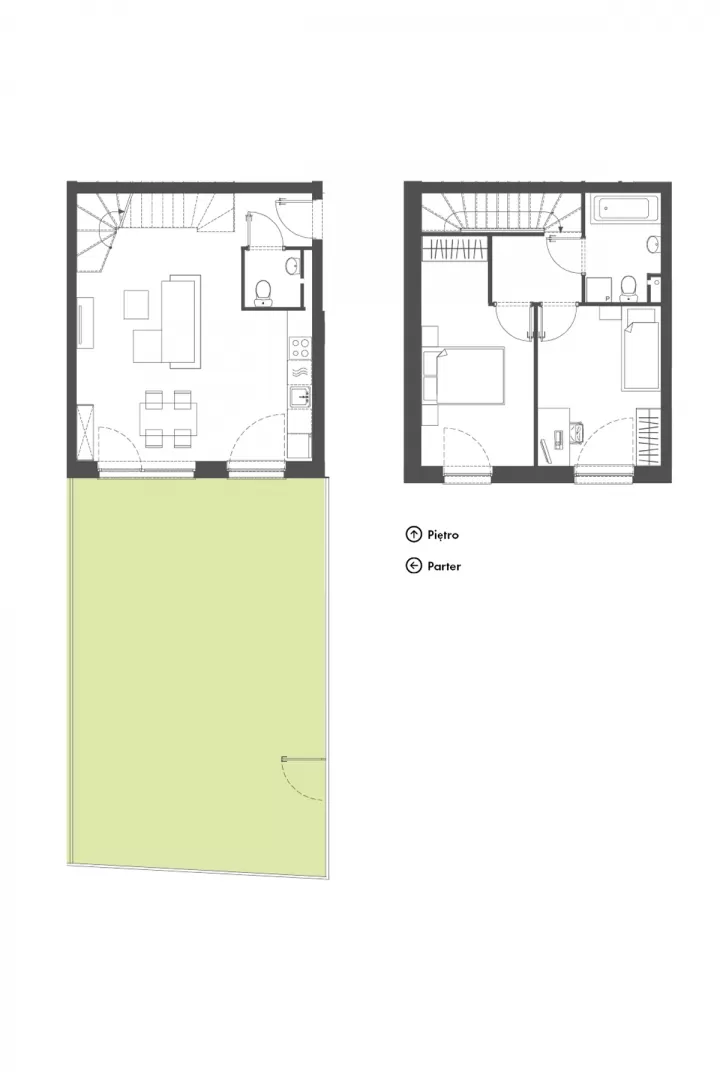 To szeregowiec z dwu-poziomowymi mieszkaniami. Każdy lokal ma tu swój ogród. Znajdziemy tu rozwiązania 3 lub 4 pokojowe. W ramach jednego wspólnego wejścia znajdują się cztery mieszkania o powierzchni 66 lub 79 moraz wspólny kocioł grzewczy dla wszystkich czterech mieszkań. Na parterze każdego z mieszkań znajduje się salon z aneksem kuchennym oraz toaleta. Na piętrze z kolei łazienka oraz dwie lub trzy sypialnie. Mieszkanie posiada możliwość zamontowania kominka i rolet zewnętrznych na parterze.