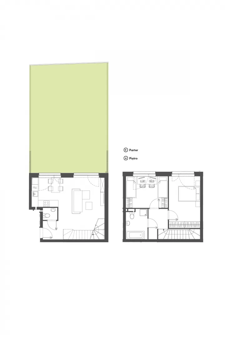 To szeregowiec z dwu-poziomowymi mieszkaniami. Każdy lokal ma tu swój ogród. Znajdziemy tu rozwiązania 3 lub 4 pokojowe. W ramach jednego wspólnego wejścia znajdują się cztery mieszkania o powierzchni 66 lub 79 moraz wspólny kocioł grzewczy dla wszystkich czterech mieszkań. Na parterze każdego z mieszkań znajduje się salon z aneksem kuchennym oraz toaleta. Na piętrze z kolei łazienka oraz dwie lub trzy sypialnie. Mieszkanie posiada możliwość zamontowania kominka i rolet zewnętrznych na parterze.