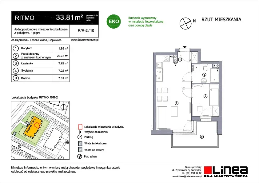 Ritmo to nowy typ wielorodzinnego budynku na osiedlu Dąbrówka - Leśna Polana. Zaprojektowalismy go z myślą o komforcie i zrównoważonym stylu życia mieszkańców naszego osiedla. W Ritmo będą znajdować się trzy kondygnacje z mieszkaniami o powierzchni od 28 do 52 m2, z jednym, dwoma lub trzema pokojami. Mieszkania na parterze tradycyjnie będą miały dostęp do urokliwych ogródków, natomiast te na wyższych kondygnacjach będą wyposażone w przestronne balkony. Zadzwoń lub napisz do nas, jeśli interesuje Cię oferta mieszkań Ritmo.