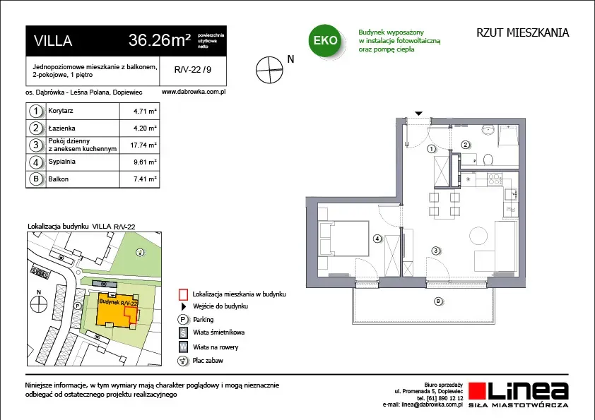 VILLA EKO to nowa odsłona dobrze znanego naszym klientom budynku Villa. Zmieniliśmy nie tylko elewację i kubaturę budynku, ale przede wszystkim wyposażyliśmy go w pompy ciepła i panele fotowoltaicze. To dzięki nim 100% energii potrzebnej do ogrzania mieszkań pochodzi z zielonego źródła. Co ważne, utrzymaliśmy kameralny charakter budynku z niewielką ilością mieszkań, tym samym zachowując cechy zabudowy willowej. Tak jak w przypadku swojej poprzedniczki i tu na parterze znajdują się mieszkania z ogrodami, a na piętrach z przestronnymi balkonami, a mieszkania zlokalizowane na I i II piętrze posiadają indywidualne wiaty gospodarcze przy wejściu do budynku.