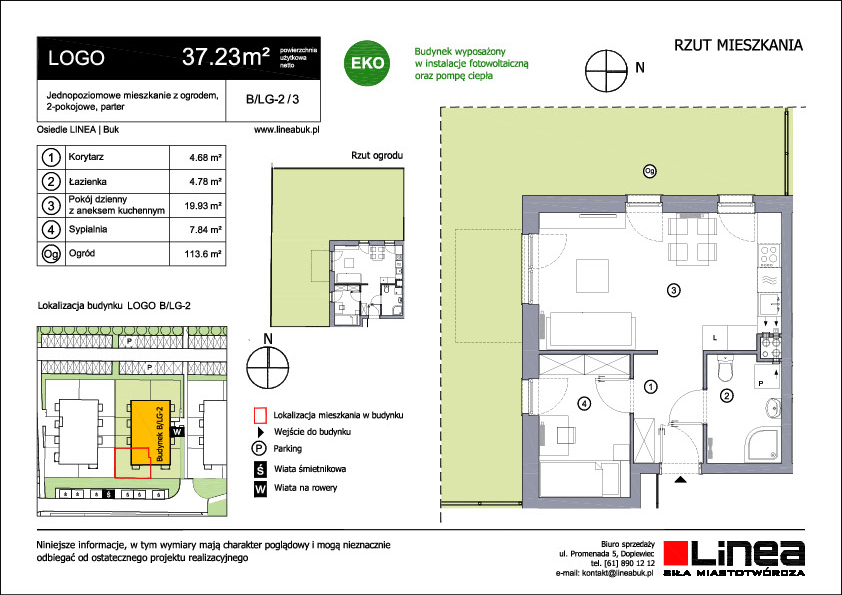 powierzchnia: 37.23 m² liczba pokoi: 2 ogród: 113.60 m²350. 000 zł