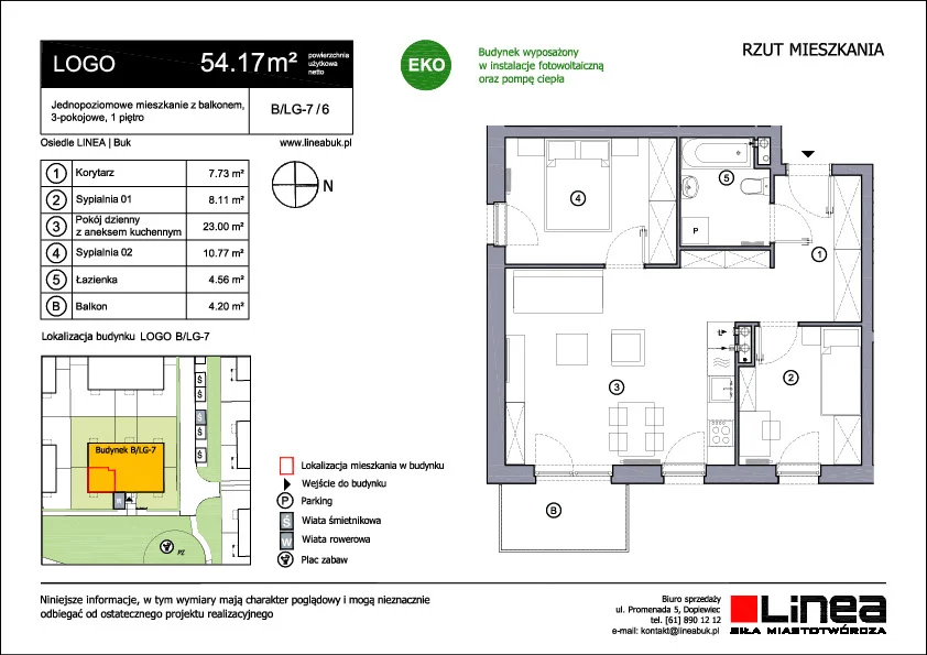 powierzchnia: 54.17 m² liczba pokoi: 2 balkon: 4.20 m²434. 537 zł